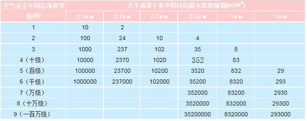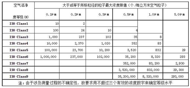 潔凈室及潔凈區(qū)空氣中懸浮粒子無(wú)塵車間潔凈度等級(jí)