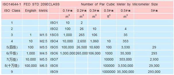 空氣無(wú)塵車間潔凈度分級(jí)標(biāo)準(zhǔn):ISO14644-1(國(guó)際標(biāo)準(zhǔn))