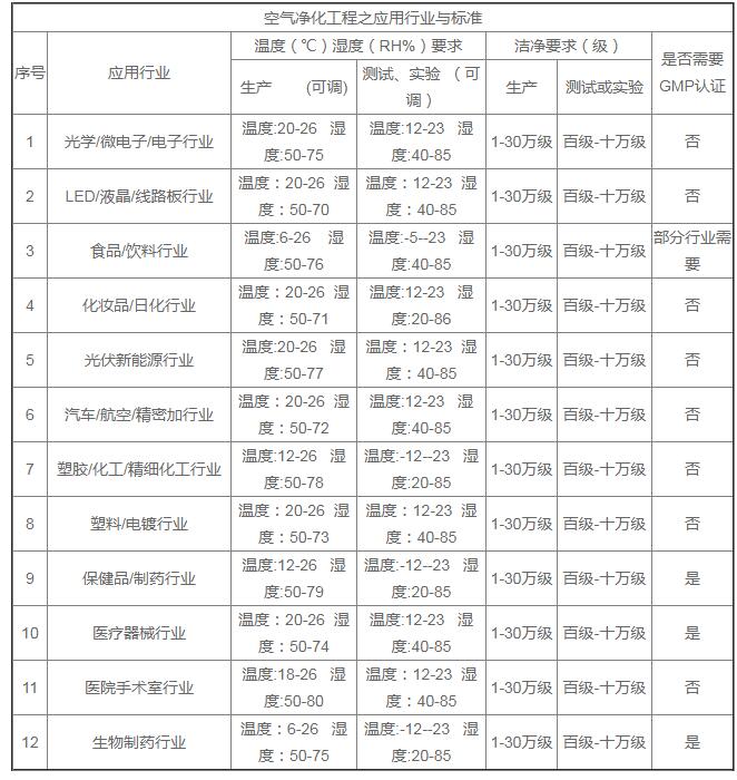 不同行業(yè)對(duì)凈化級(jí)別的標(biāo)準(zhǔn)